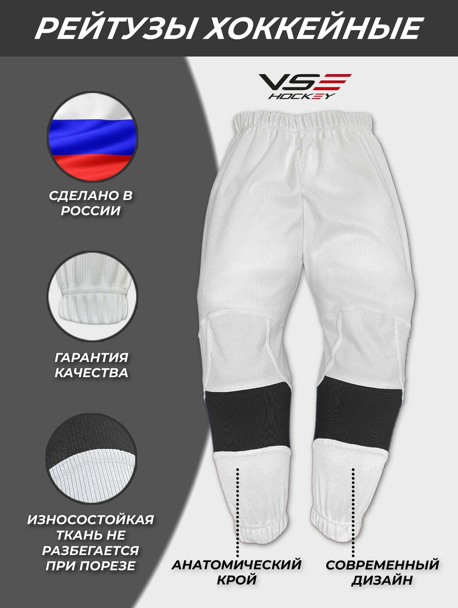 Рейтузы хоккейные VseHockey Базовая коллекция, размер YTH-1+, бело-черный информация: