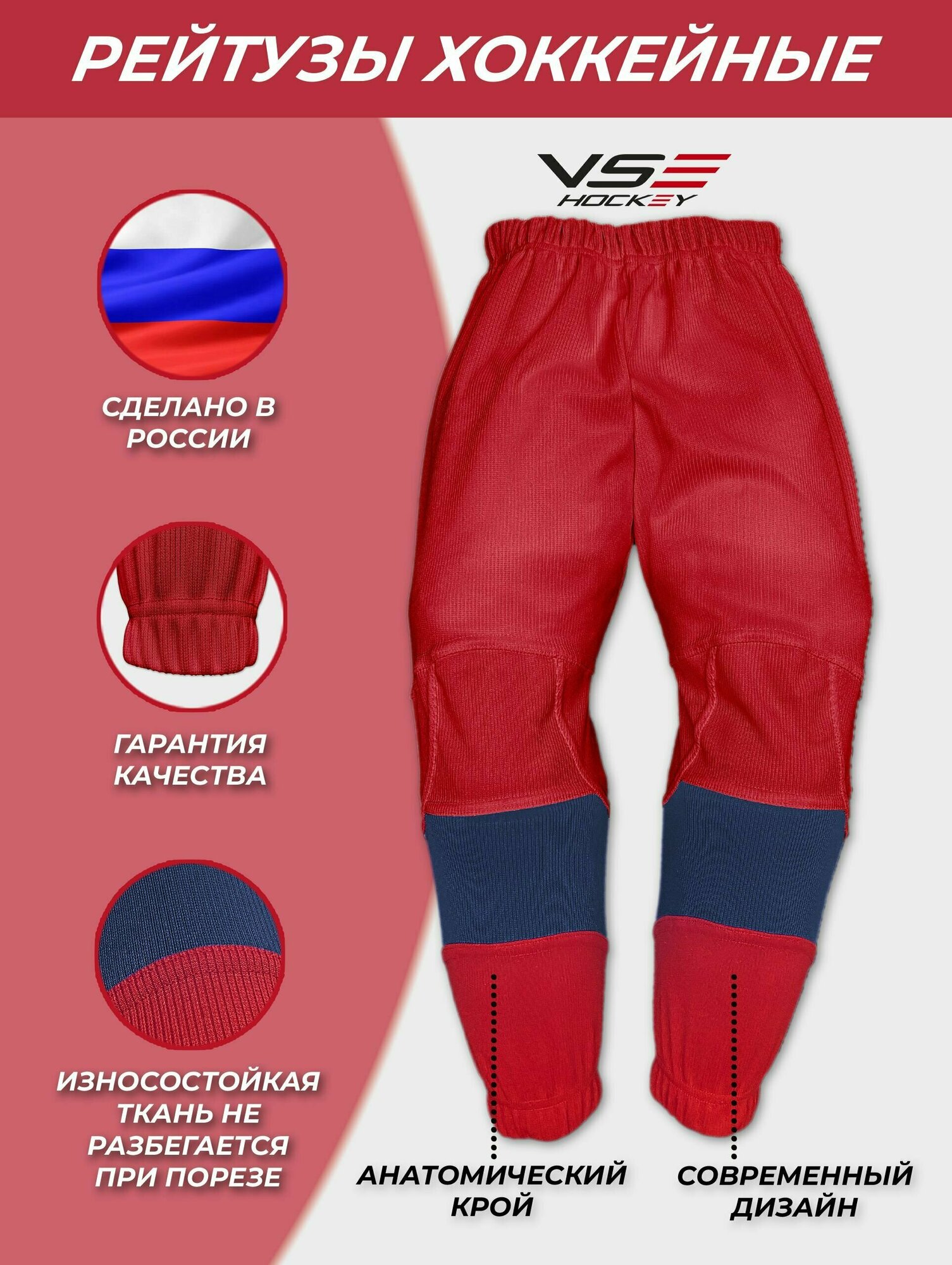 Отзывы на Рейтузы хоккейные VseHockey Базовая коллекция, размер JR-3, синий, красный