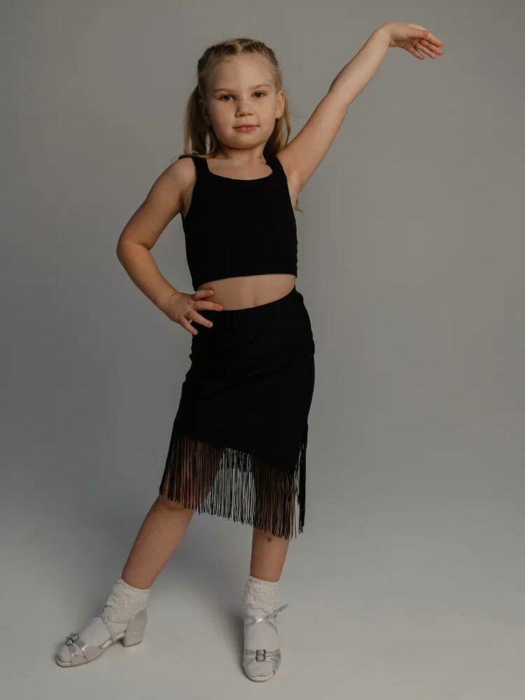 10 цен на Юбка для гимнастики и танцев Детская юбка для танцев с бахромой, размер 128/134, черный