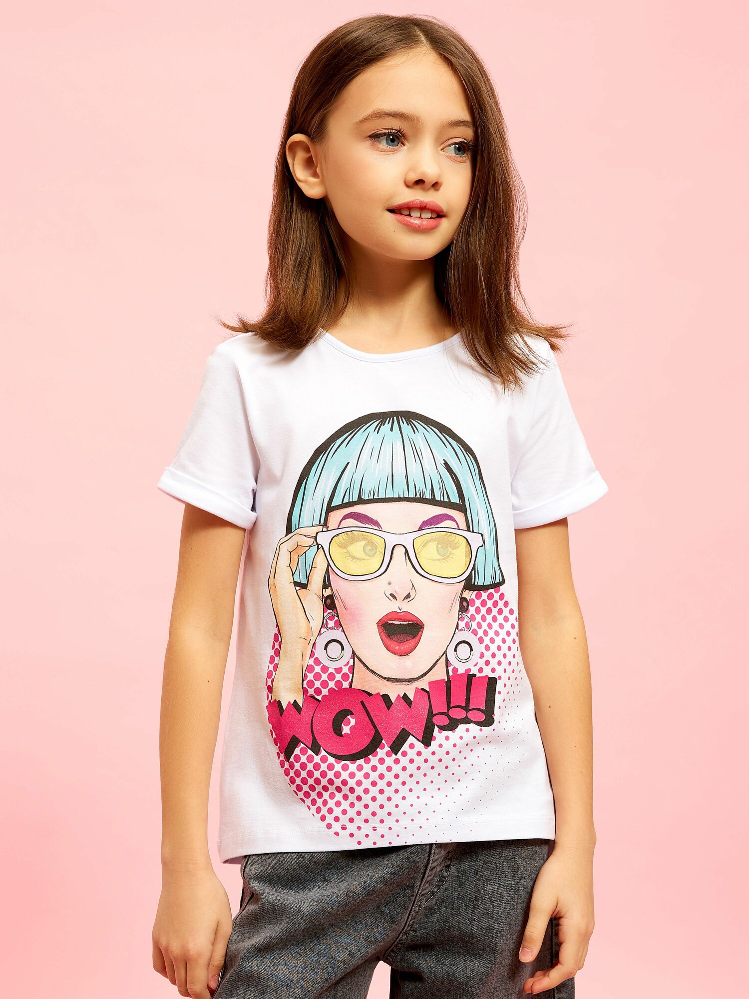 Футболка Juno, размер 128, белый, розовый 480 ₽