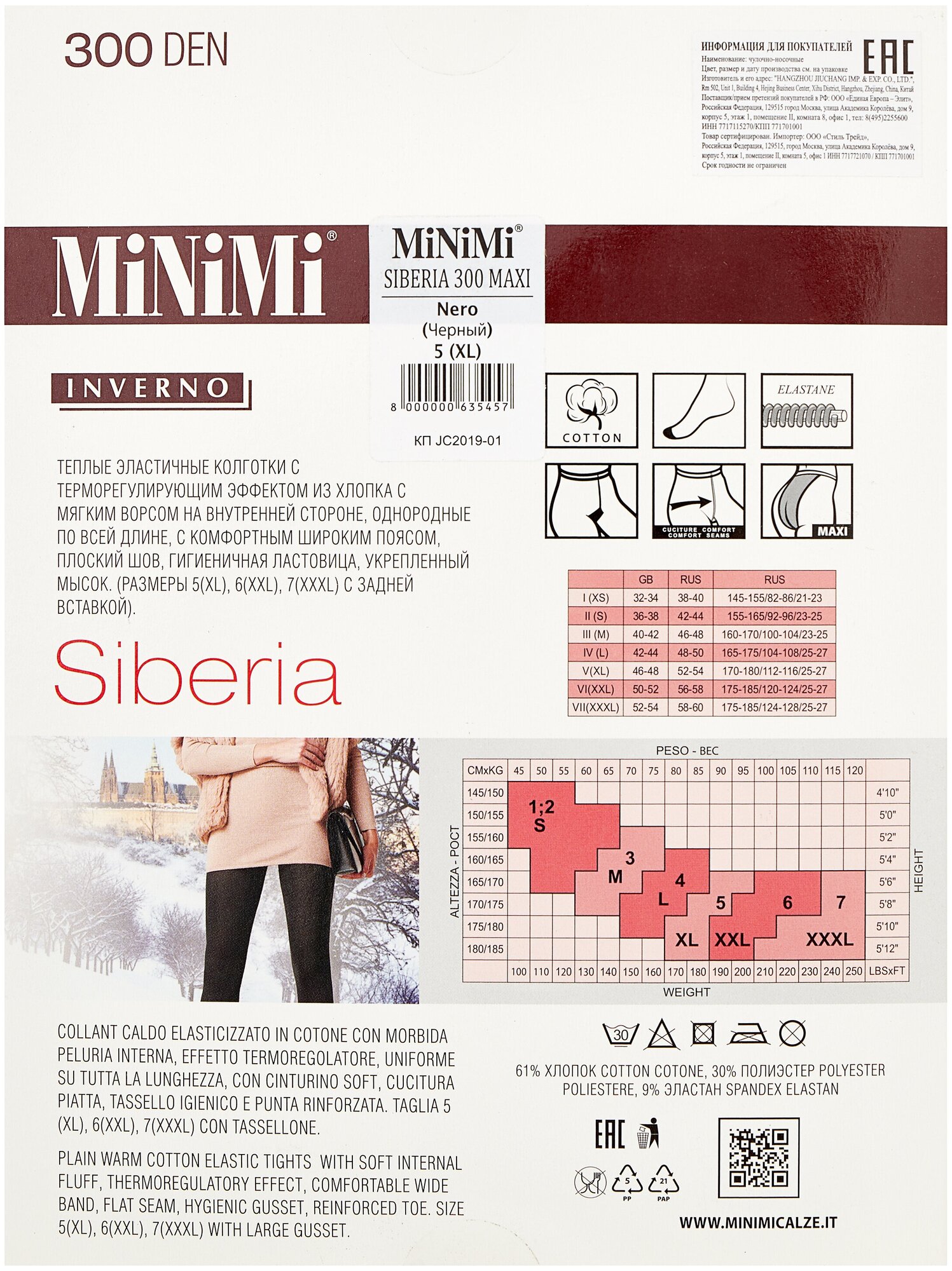 Колготки MiNiMi Siberia, 300 den, размер 5, черный информация: