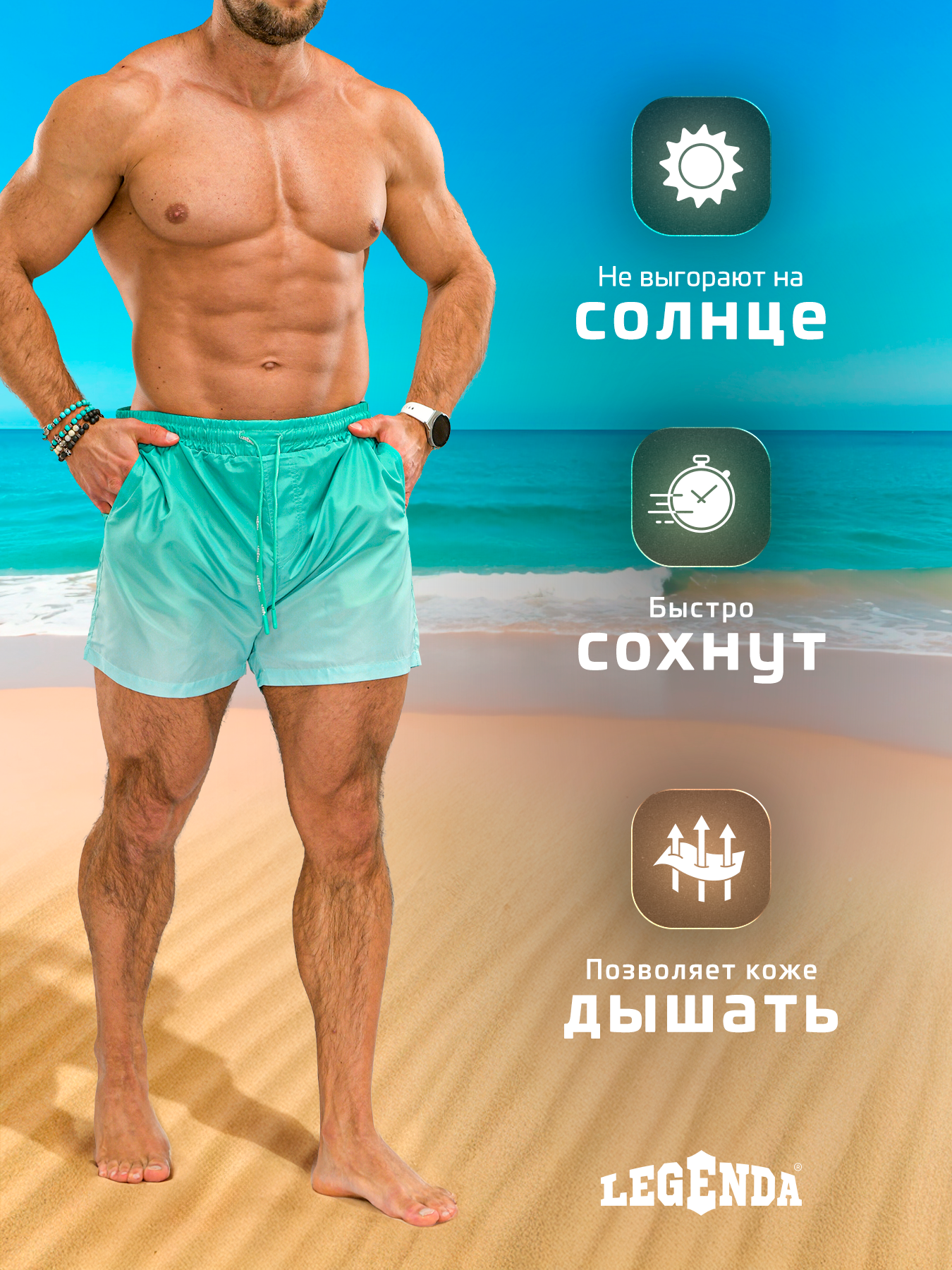 Шорты для плавания Legenda Gradient, размер M, зелёный 2 849 ₽