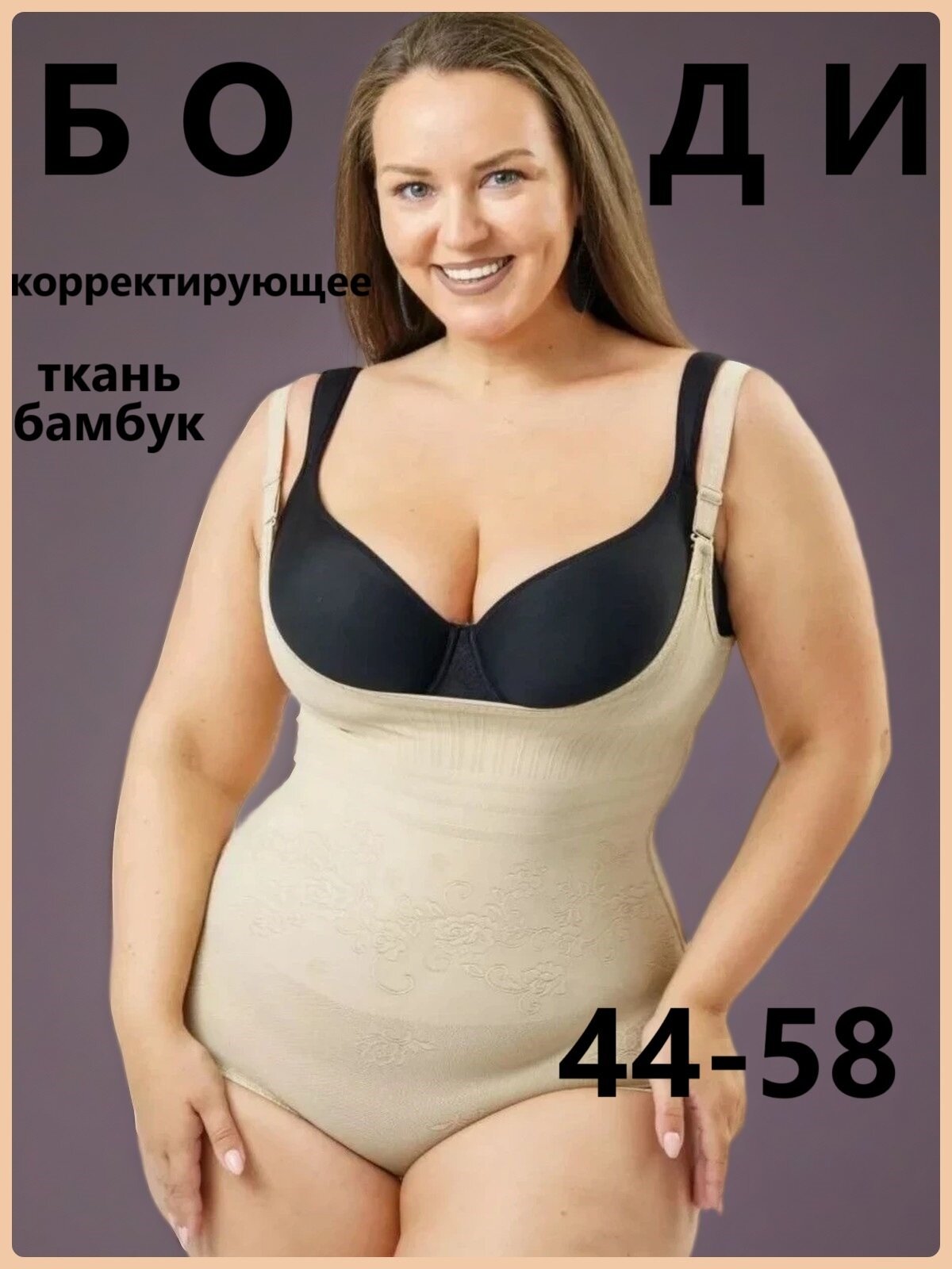 Боди, размер 52/54 (4XL), телесный информация: