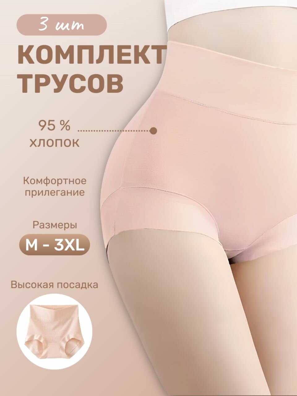 10 цен на Трусы с высокой посадкой хлопковые, размер M, розовый