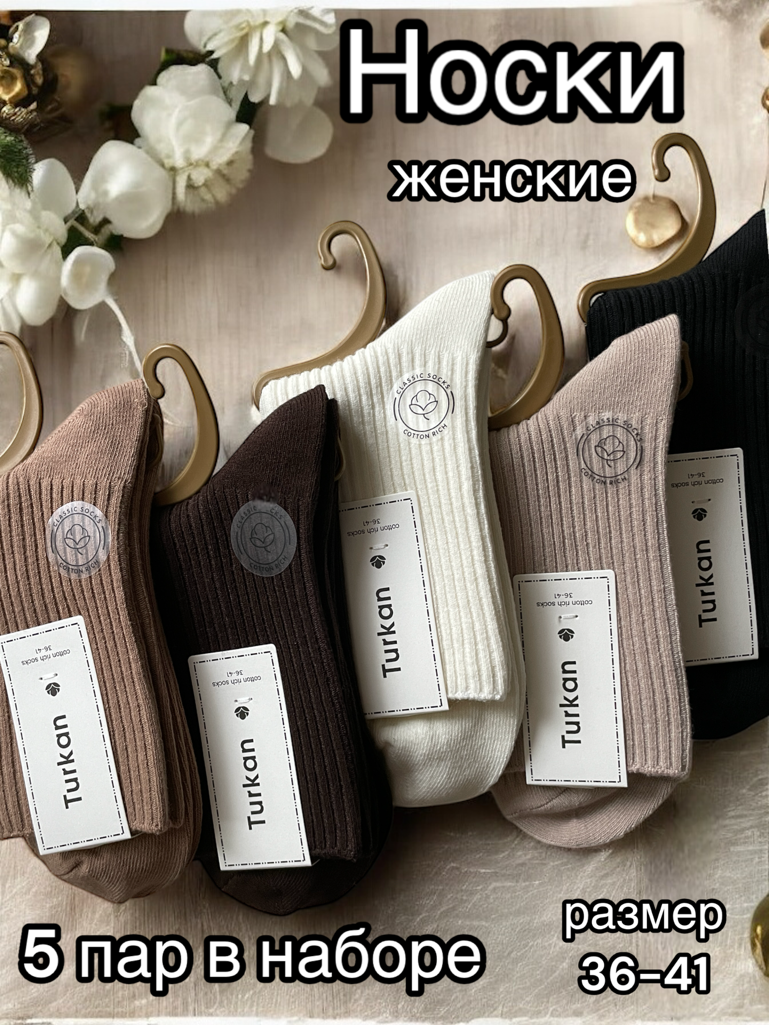 Отзывы на Носки Turkan, комплект, 5 пар, размер 36-41, черный, коричневый, бежевый