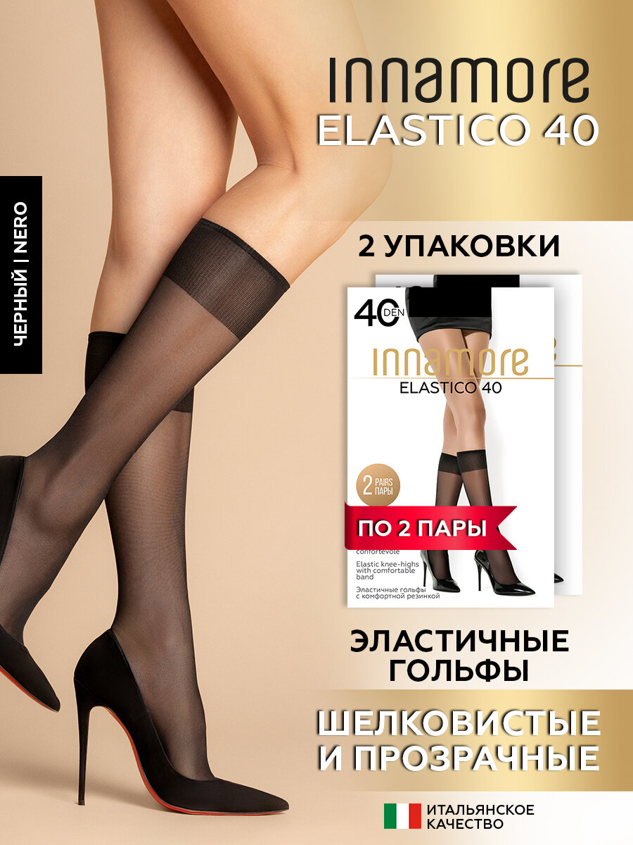 Гольфы Innamore Elastico 40, комплект, 40 den, 4 пары, 2 уп., размер Универсальный, черный информация:
