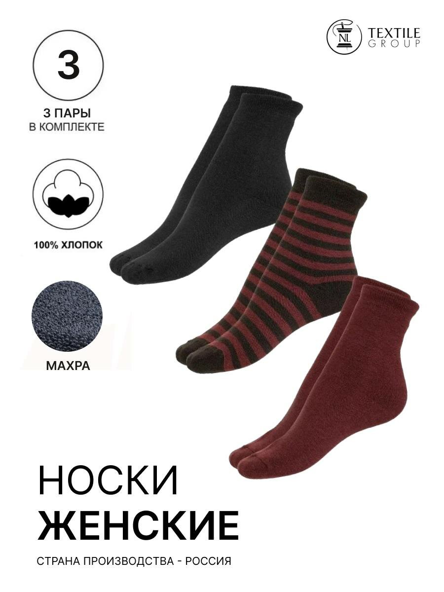 Носки NL Textile Group, комплект, 3 пары, размер 23-25, бордо информация:
