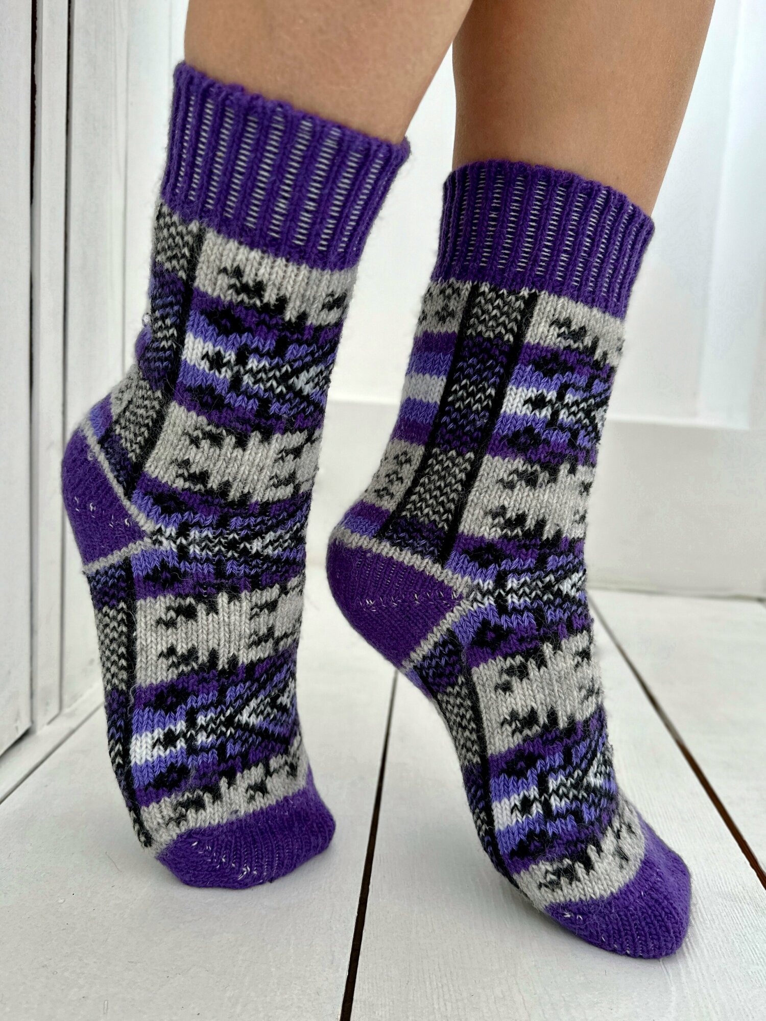 10 цен на Носки Русская шерсть фиолетовые со снежинками, размер 38-40, фиолетовый, серый