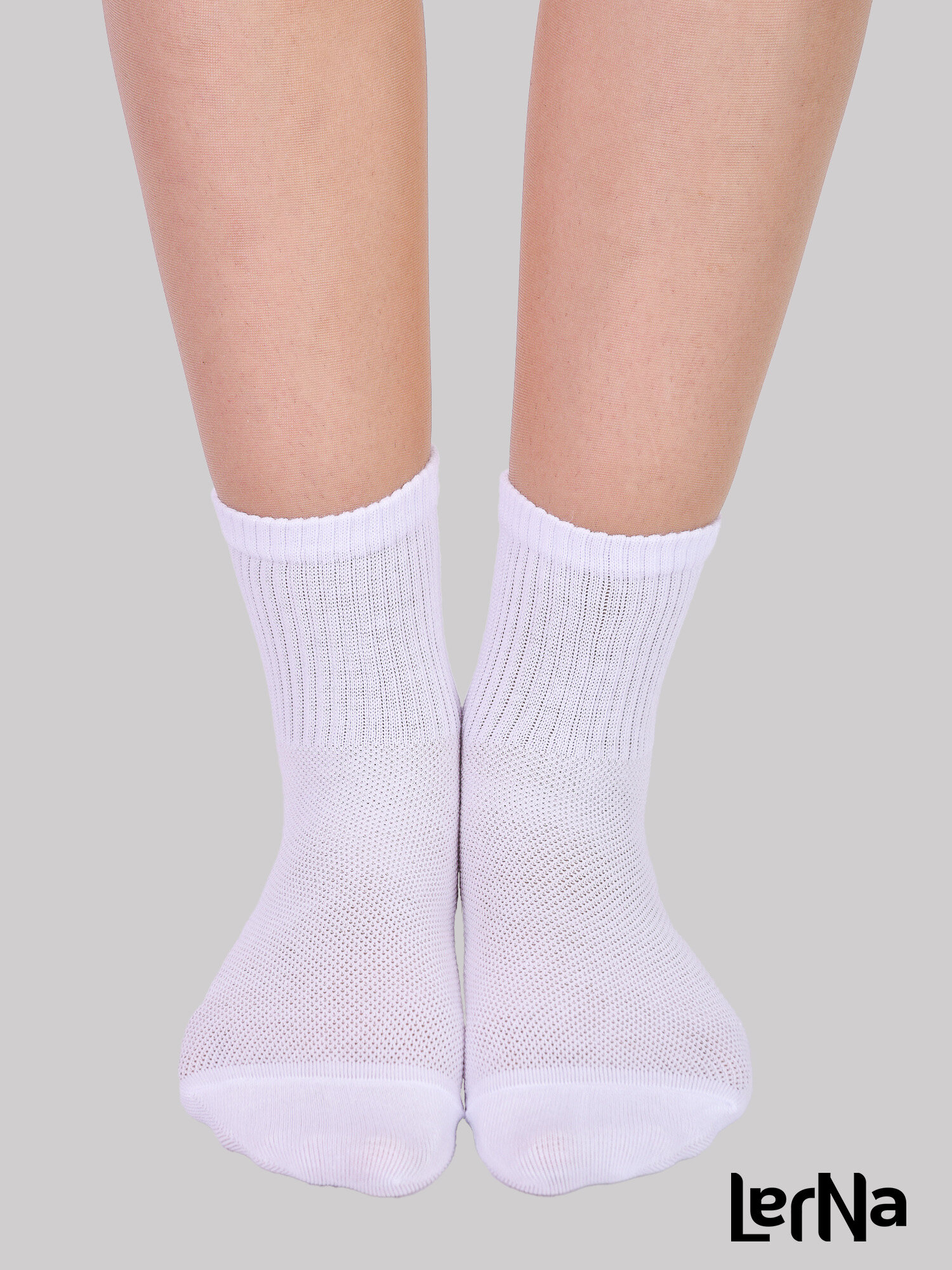 Носки LerNa короткие спортивные в сетку, комплект, 2 пары, размер 41-43, белый 600 ₽