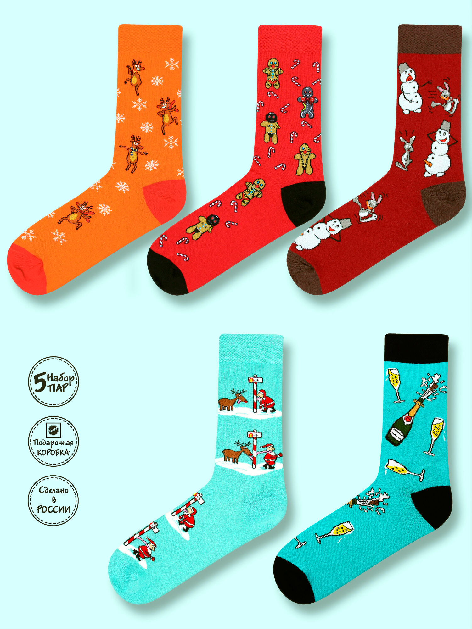 Носки Kingkit, комплект, 5 пар, размер 41-45, красный, оранжевый, зеленый, бордовый информация: