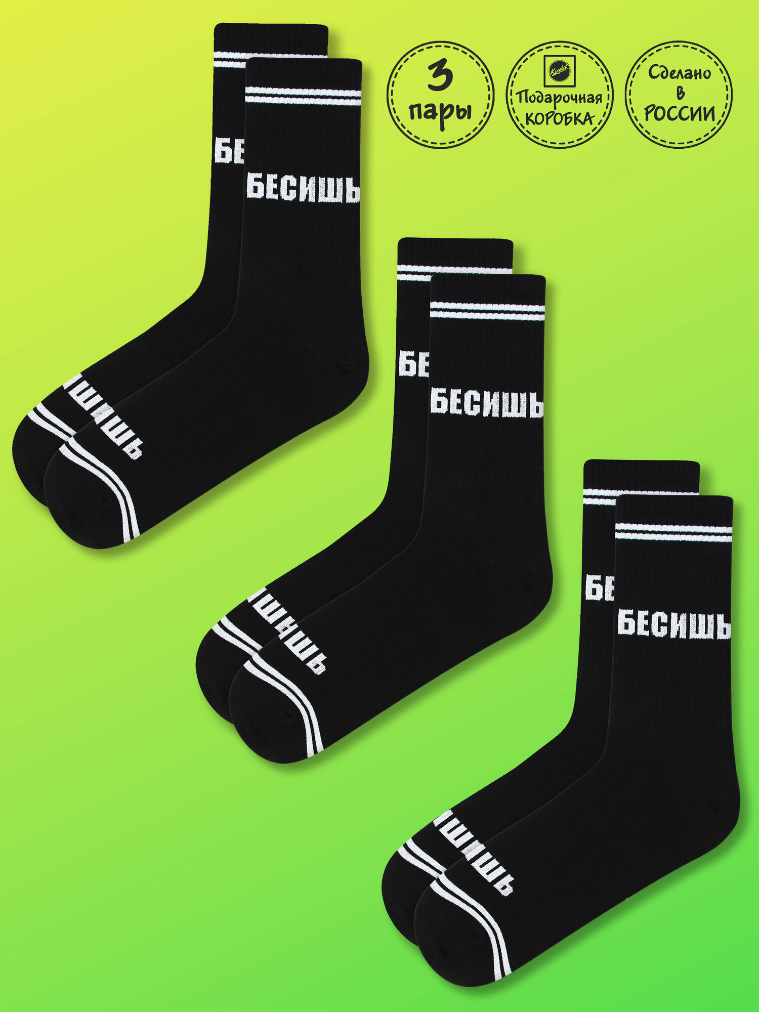 Носки Kingkit Носки Кингкит 3 пары подарочная упаковка черные, комплект, 3 пары, размер 36-41, желтый/черный/белый 859 ₽