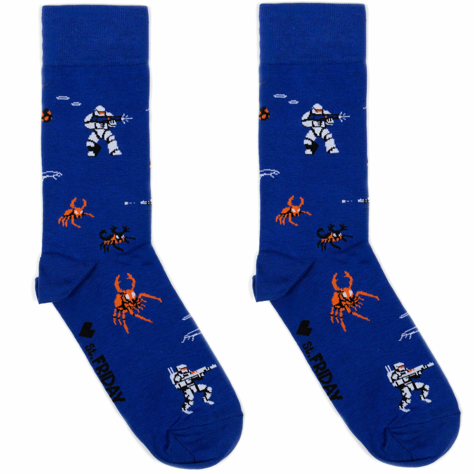Носки St. Friday Носки с рисунками St.Friday Socks Звездный десант, размер 42-46, синий, оранжевый, белый информация: