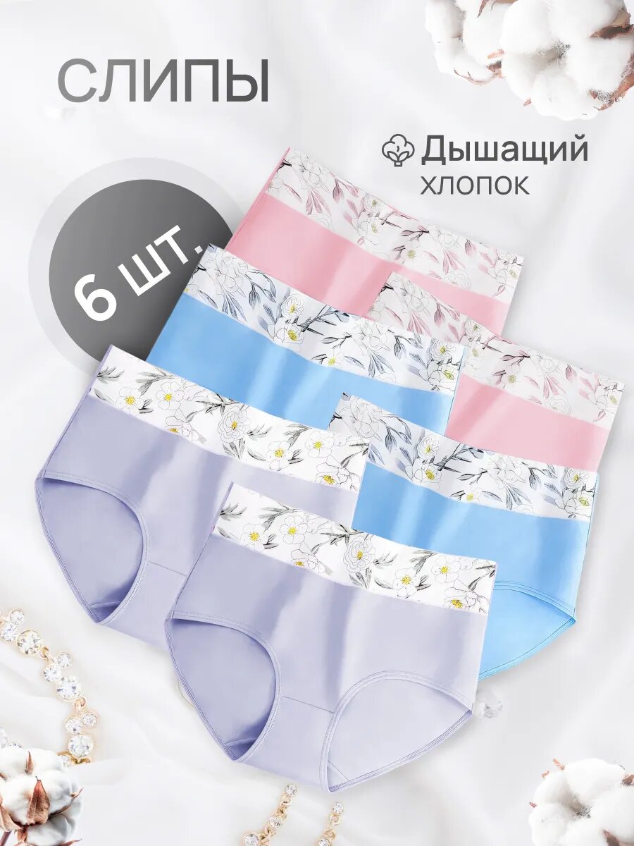 Трусы Inniko набор 6 шт, комплект из 6 шт., размер M, голубой, серый, желтый, фиолетовый, розовый 1 500 ₽