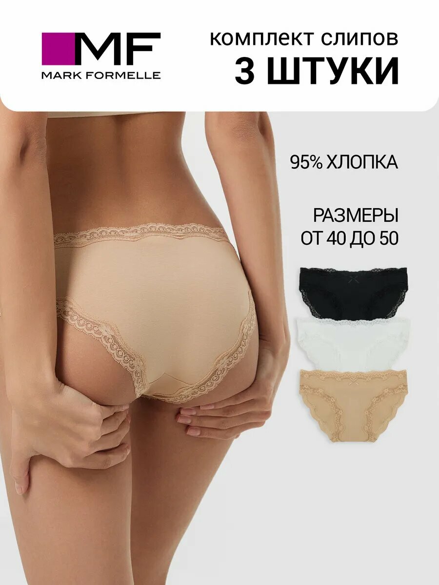 Отзывы на Трусы MARK FORMELLE Нижнее белье, комплект из 3 шт., размер L, белый, черный, бежевый