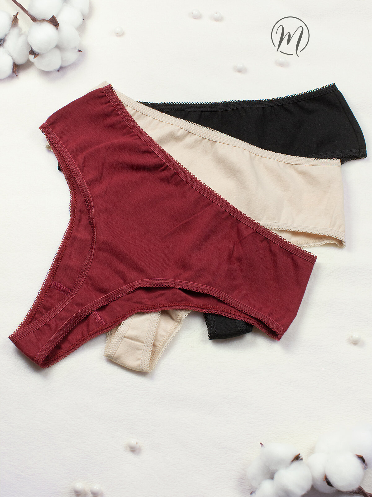 Трусы MONELINO, комплект из 3 шт., размер M, черный/белый/бежевый 1 200 ₽