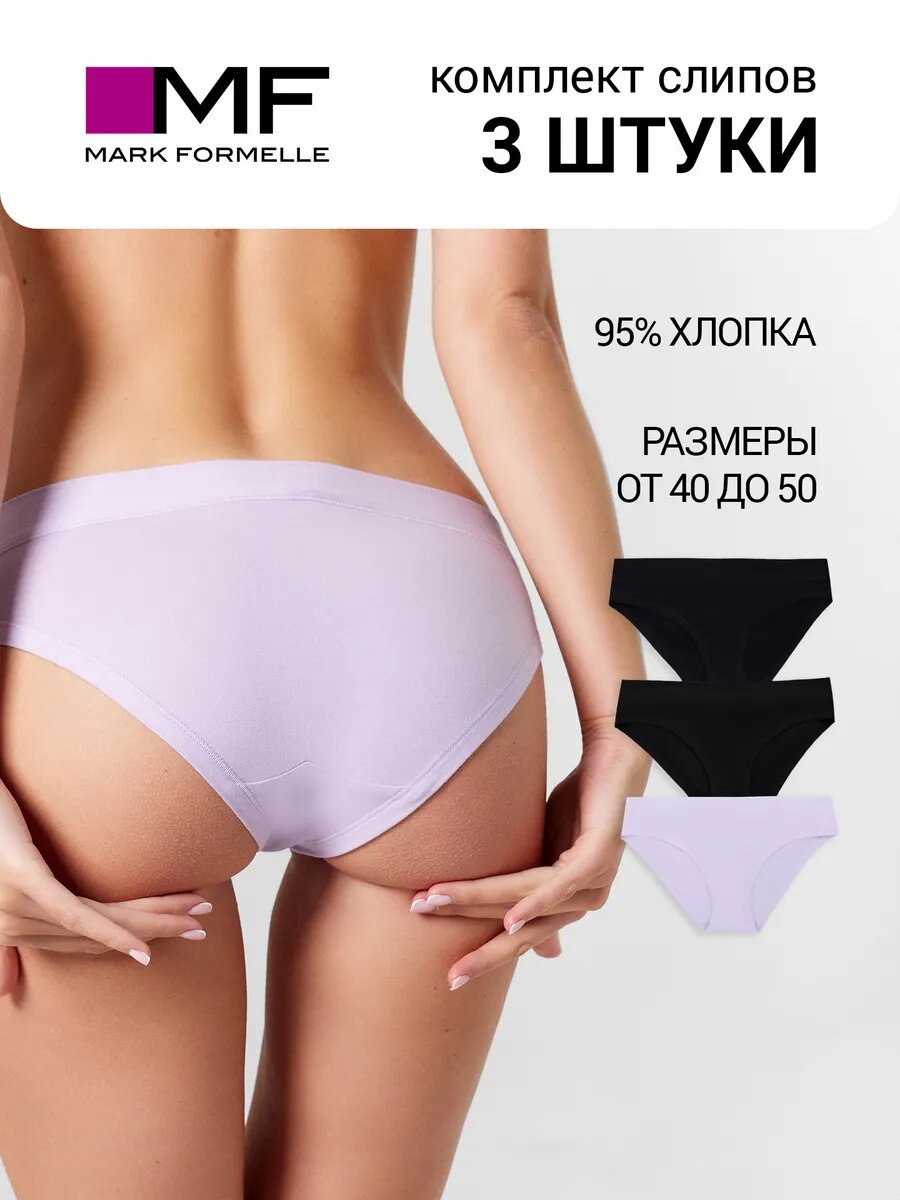 Трусы MARK FORMELLE Нижнее белье, комплект из 3 шт., размер M, белый, черный, фиолетовый 948 ₽