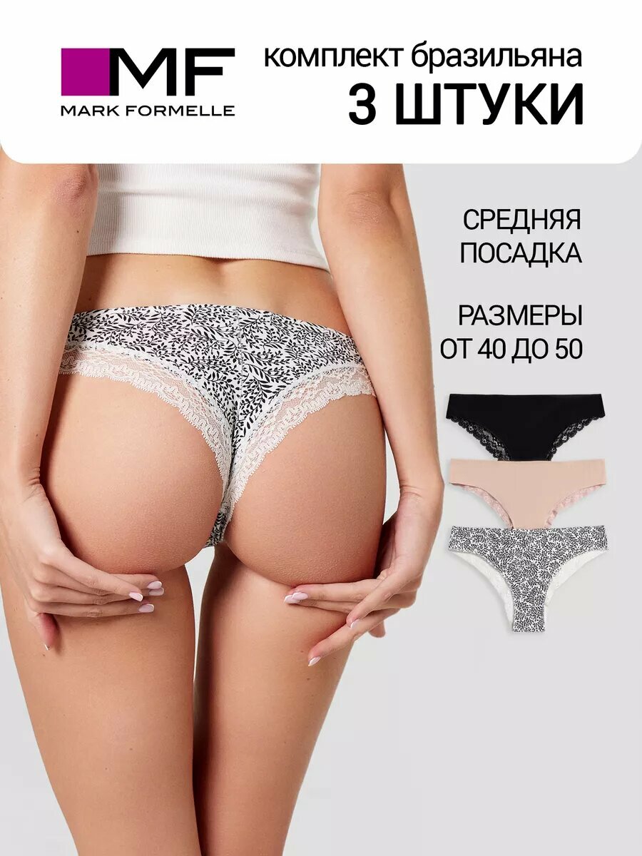 Характиристики этого товара не найдены!Отзывы на Трусы MARK FORMELLE нижнее белье, комплект из 3 шт., размер XS, черный, бежевый