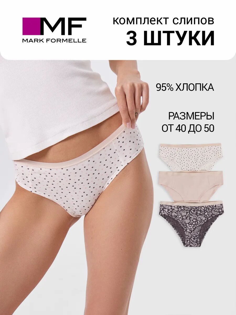 10 цен на Трусы MARK FORMELLE нижнее белье, комплект из 3 шт., размер S, горошек на молочном