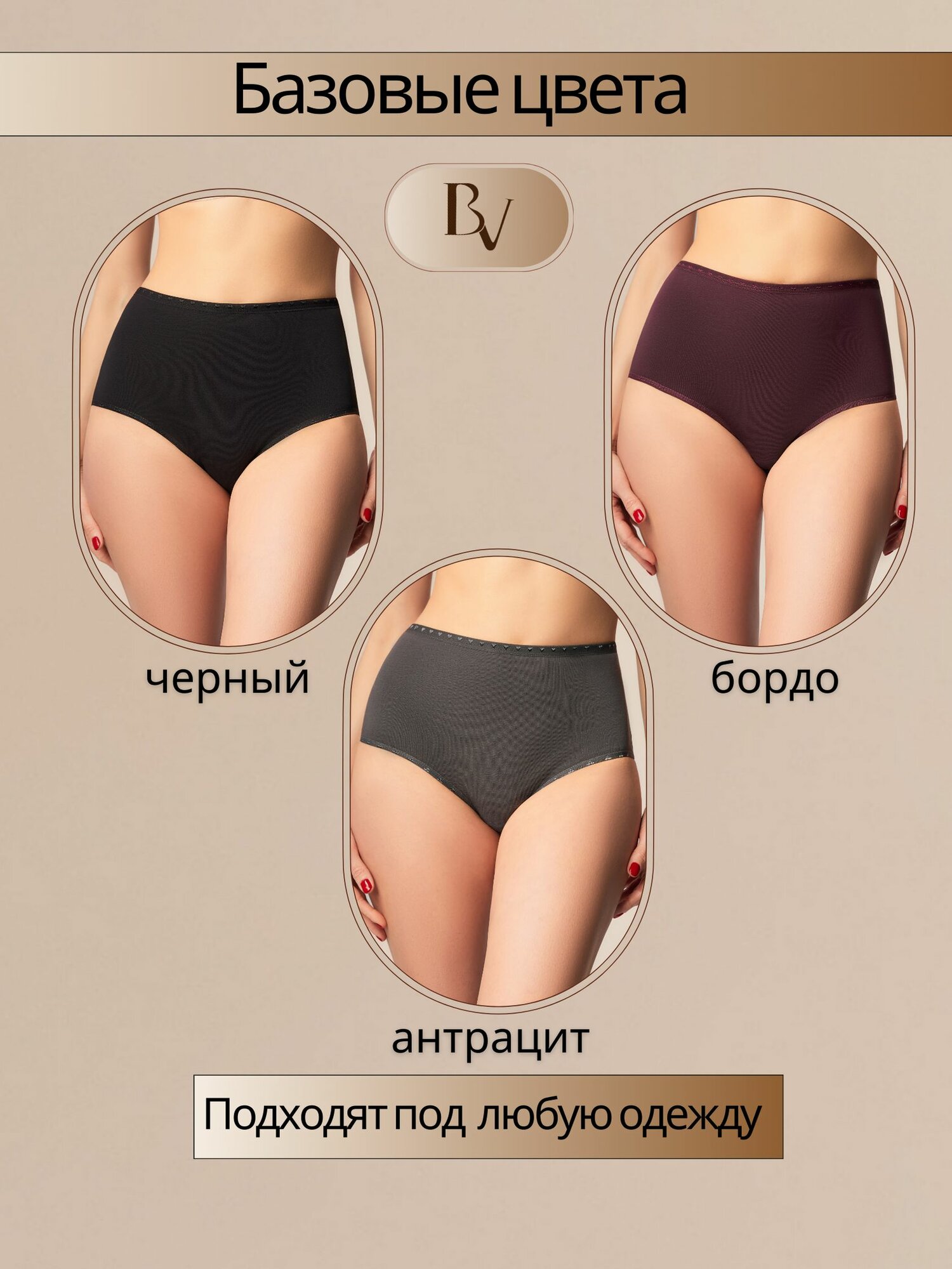 Трусы Bella veza Макси, комплект из 3 шт., размер 7, бордовый, черный, серый 915 ₽