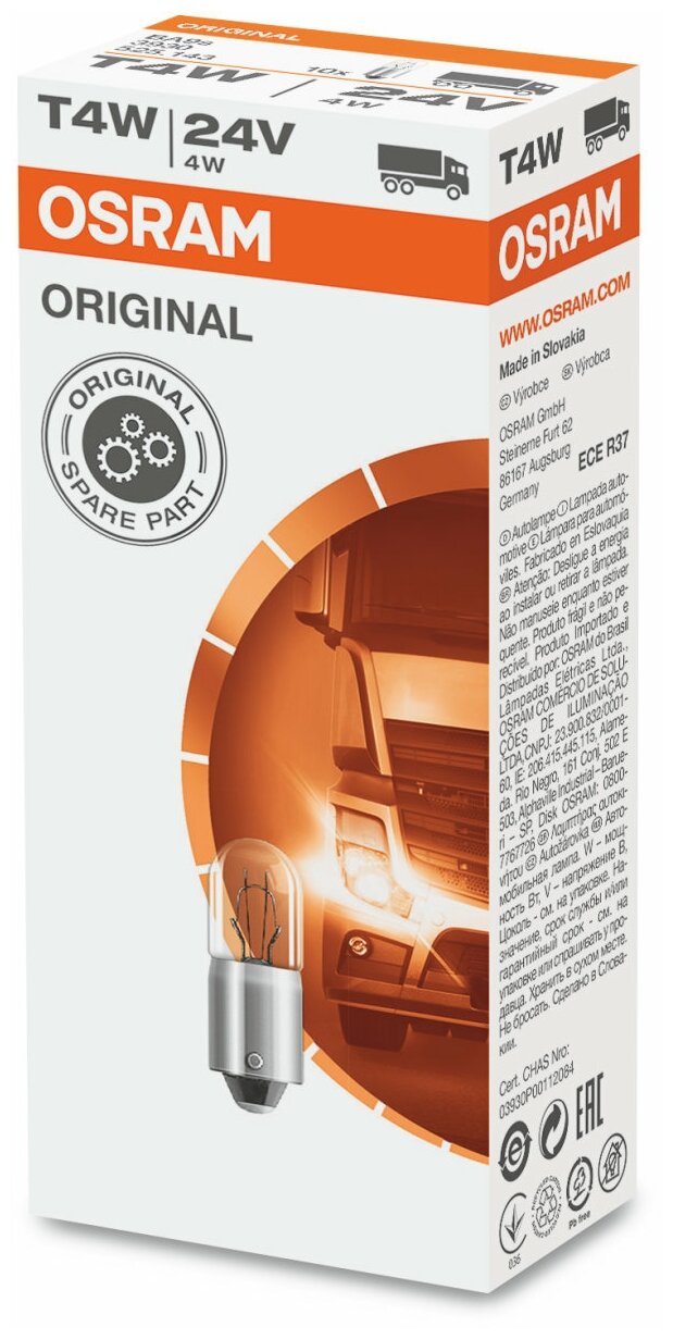 10 цен на Лампа накаливания фонарь указателя поворота лампа Osram 3930 T4W Daf 65 Cf. Daf 75. Daf 95 Xf. Daf F 1000. Daf F 1700.