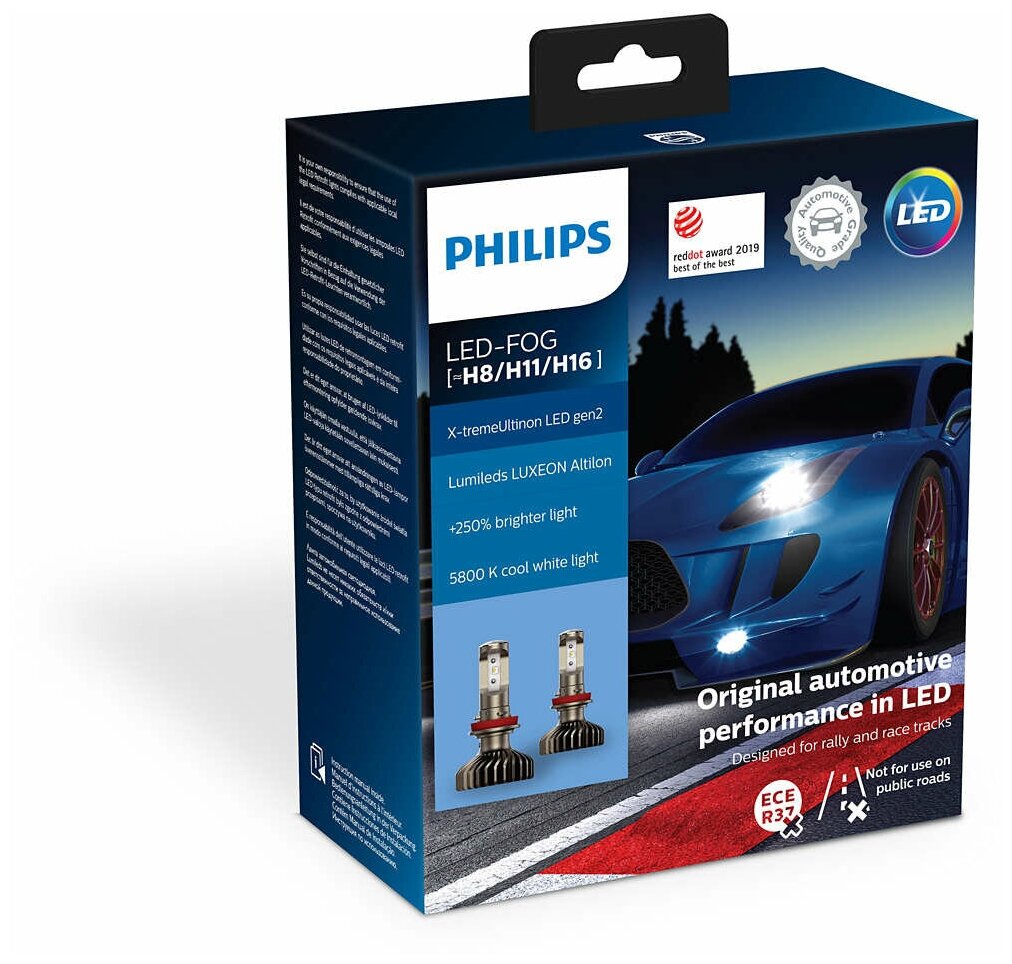 Комплект ламп светодиодные (h8/h11/h16) 12v 5800k x-tremeultinon led gen2, 2шт Philips 11366XUWX2 информация: