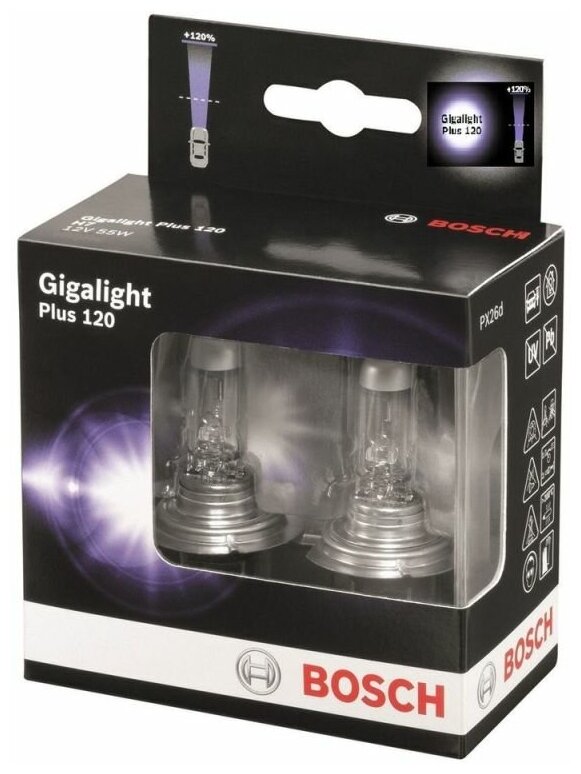 Лампа галогенная Bosch Gigalight Plus 120 H4 12V 60/55W P43t, 2 шт. 2 360 ₽