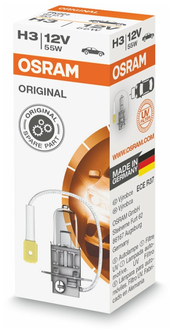 Лампа H3 12V 55W ORIGINAL LINE PK22s, карт.1 шт. информация: