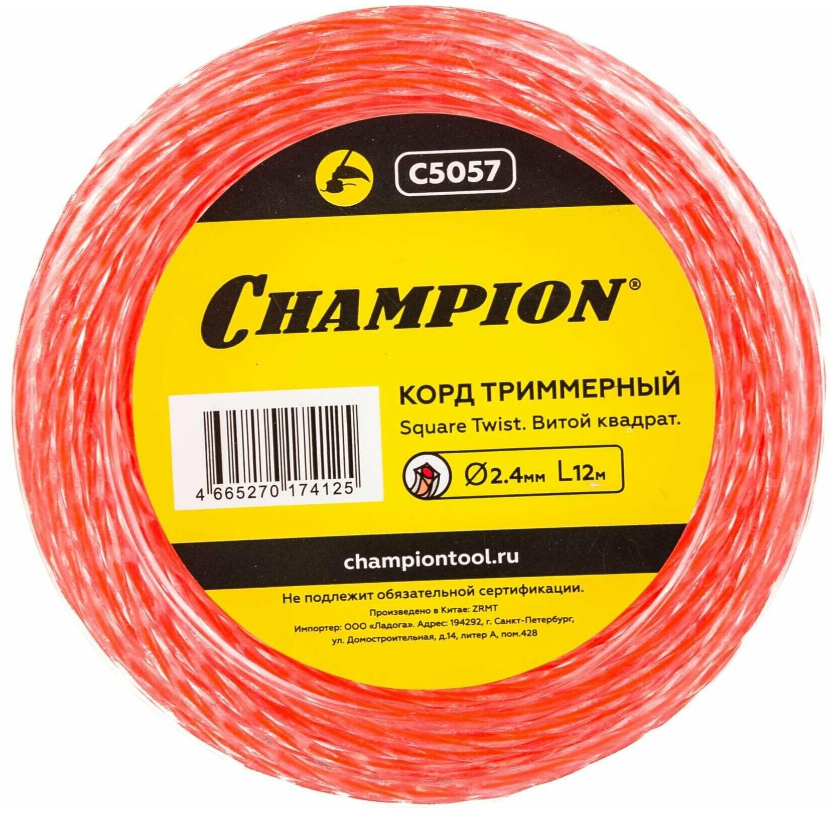 Леска для триммера CHAMPION C5057 Square Twist DUO 2.4мм *12м (витой квадрат)
