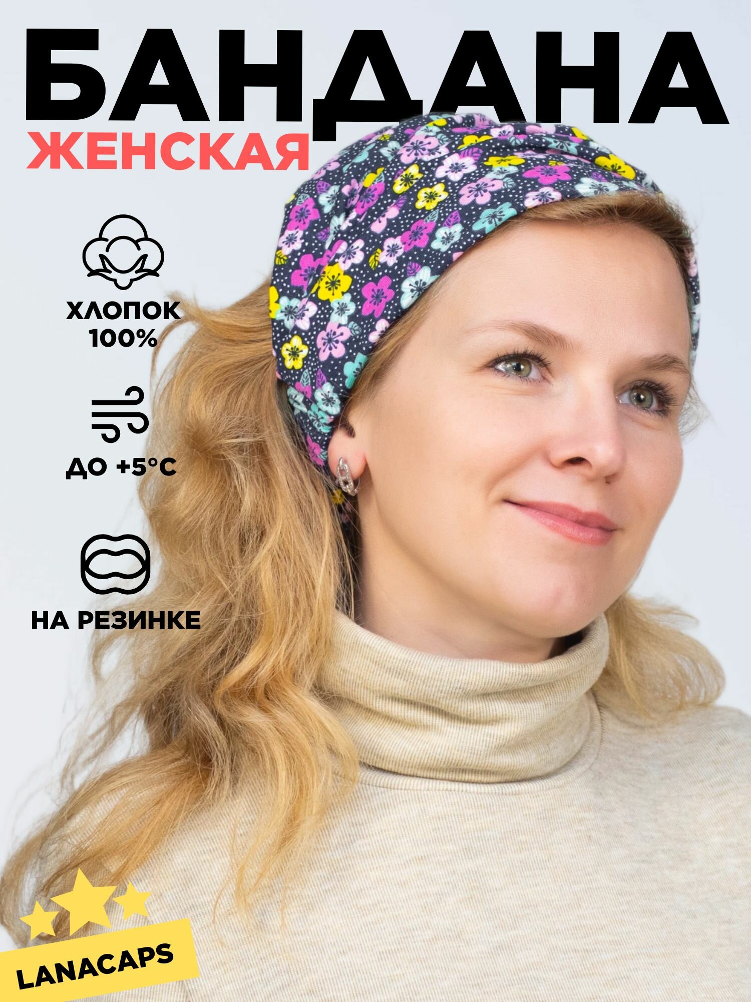 10 цен на Чалма LanaCaps Ситец для девочек и женщин, размер 56-58, ситец