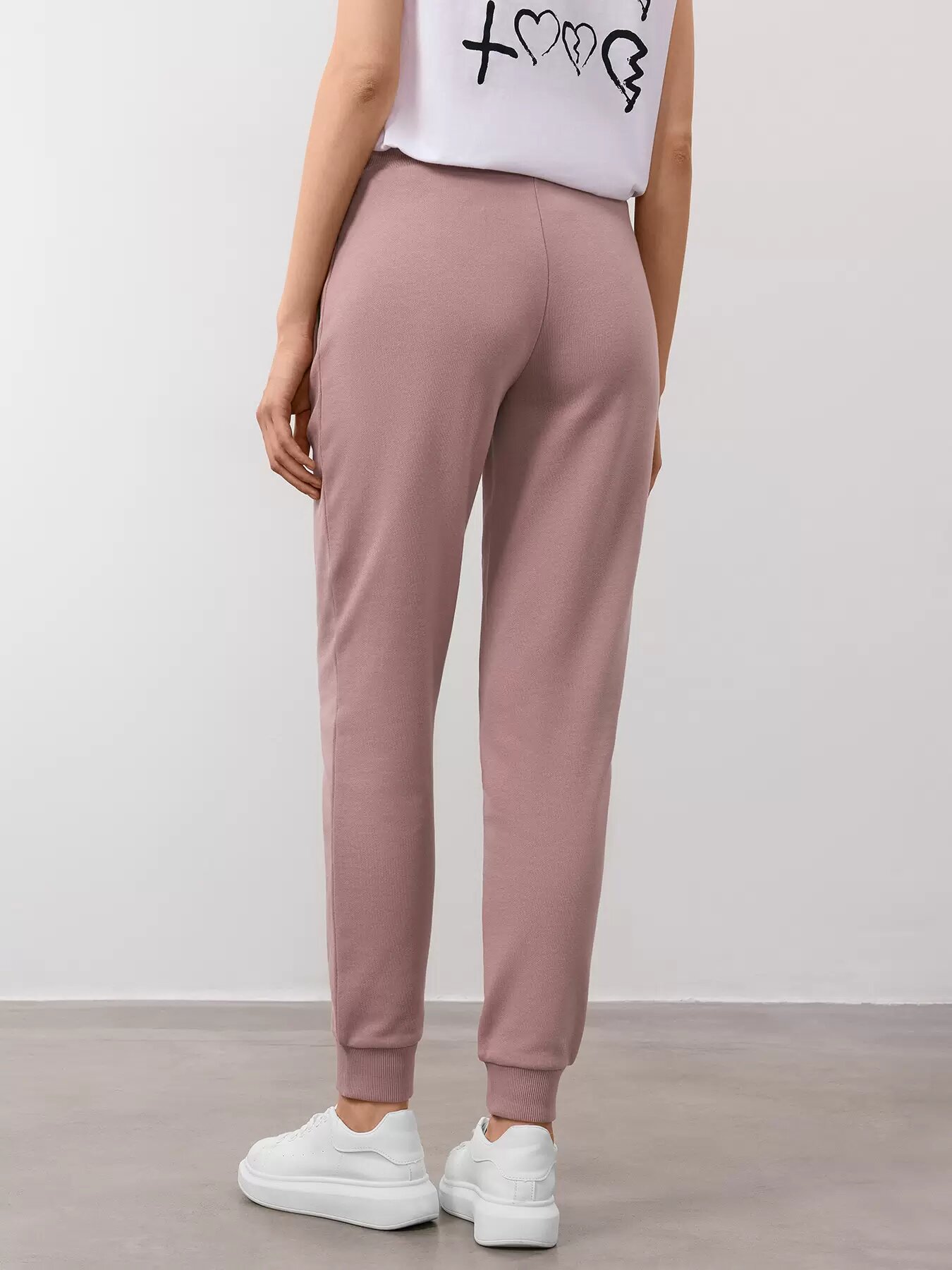 10 цен на Брюки спортивные JUST CLOTHES Пудровый. Декор термологотип. Карманы спереди 2 б/заст, сзади нет. Пояс резинка+утяг шнурок. Д 103см, размер XS, пудровый
