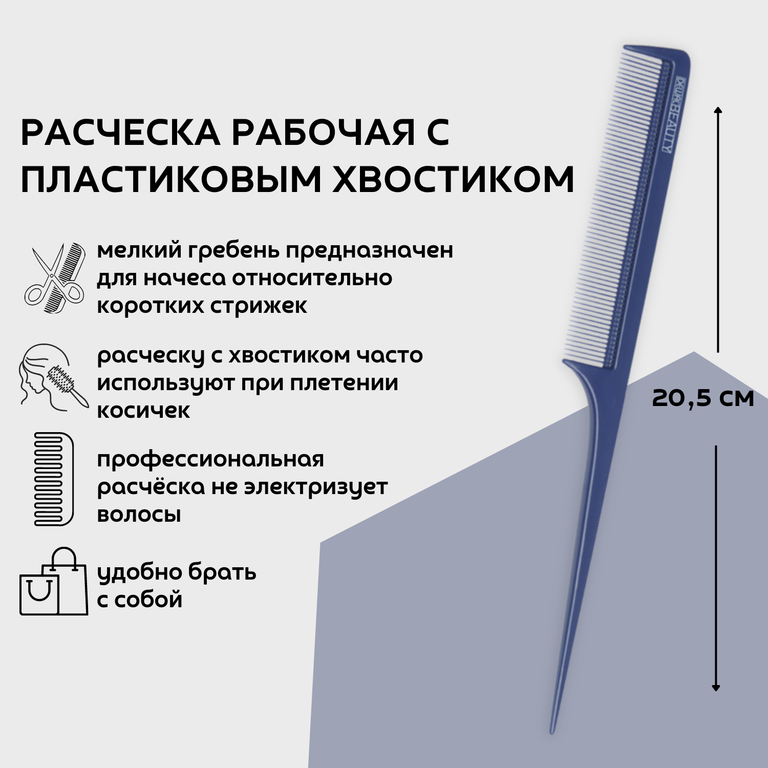 Dewal Beauty Расческа рабочая с пластиковым хвостиком, 20,5 см, пластик, цвет синий (DBS6104) информация:
