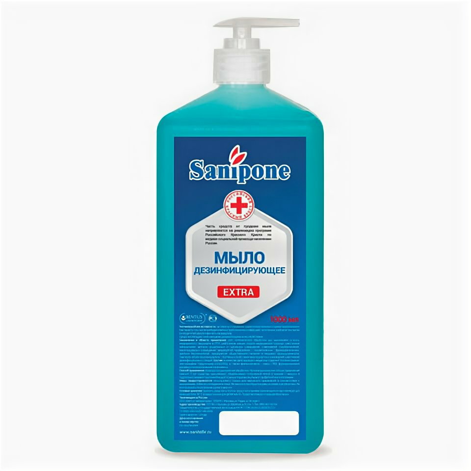 Мыло жидкое дезинфицирующее, 1 л, SANIPONE "Extra" (санипон "Экстра"), дозатор, 1000-С-Б-П-Э, 1шт в компл.