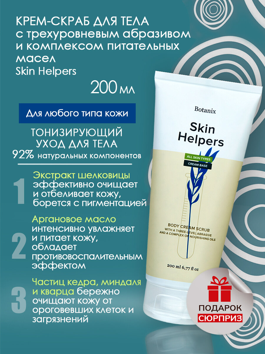 10 цен на Крем-скраб с трехуровневым абразивом и питательными маслами Botanix Skin Helpers GLORIA, 200 мл