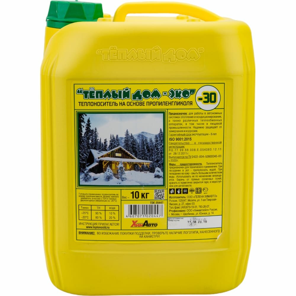 Теплоноситель пропиленгликоль Тёплый дом ЭКО -30 10 кг информация: