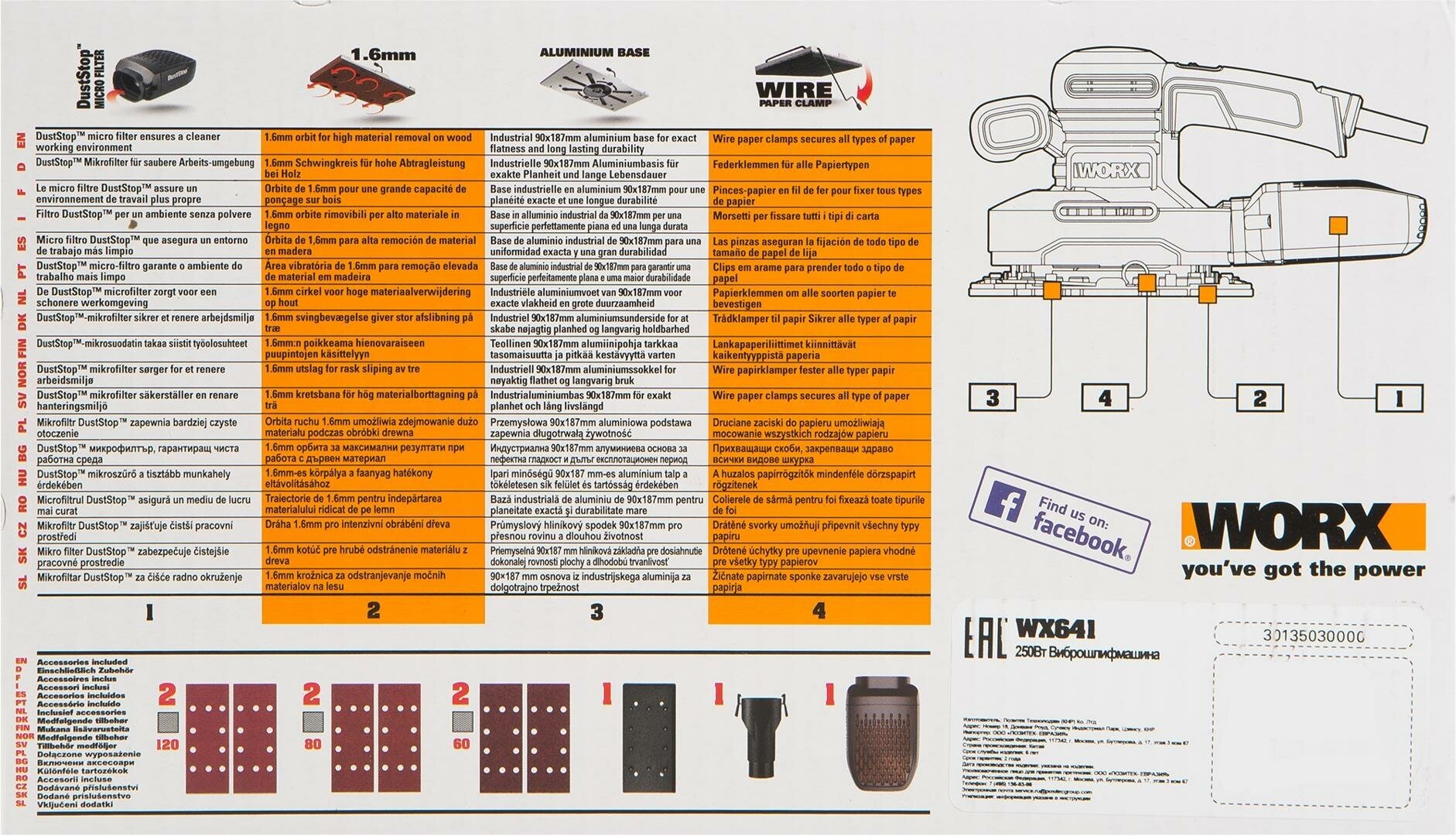 Виброшлифмашина WORX WX641 220V 250Вт электрическая информация: