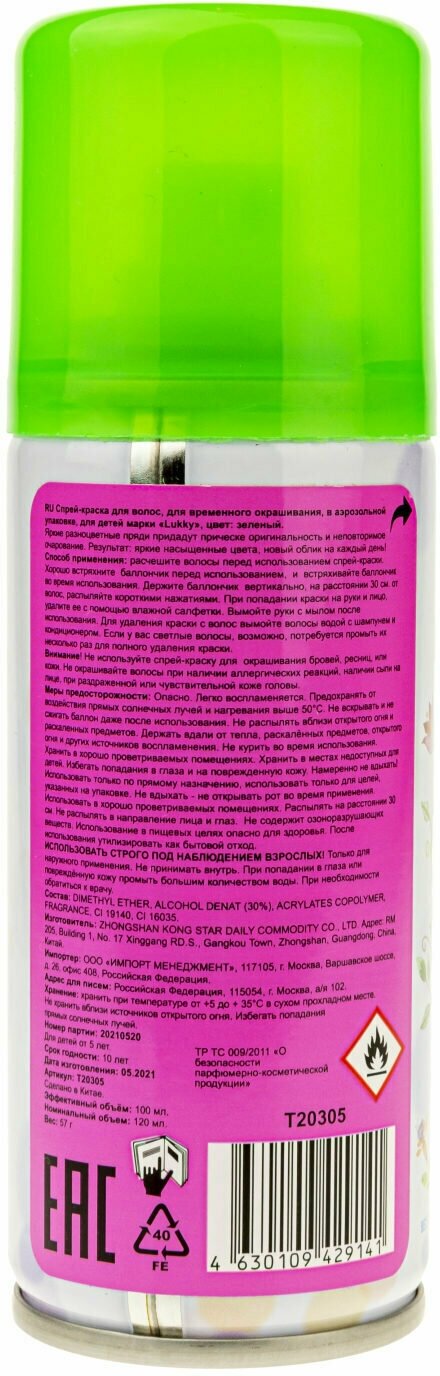 Спрей-краска для волос LUKKY в аэрозоли, для временного окрашивания, смывающаяся, зелёная, 150 мл информация: