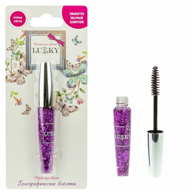 10 цен на Тушь для волос LUKKY с блёстками разной формы цвет фиолетовый