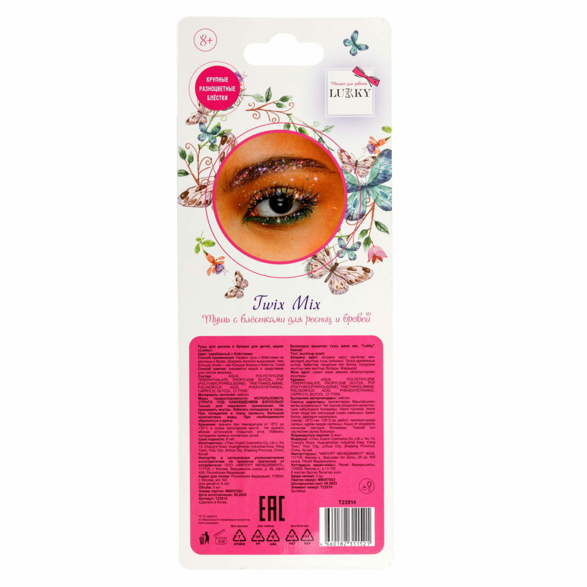 Тушь с блёстками для ресниц и бровей Lukky Twix Mix ультратонкая кисточка, цвет черный с блестками, 2 гр информация: