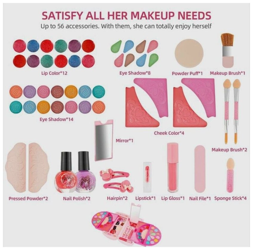 Отзывы на Детская косметика для девочек Набор декоративной косметики 56в1