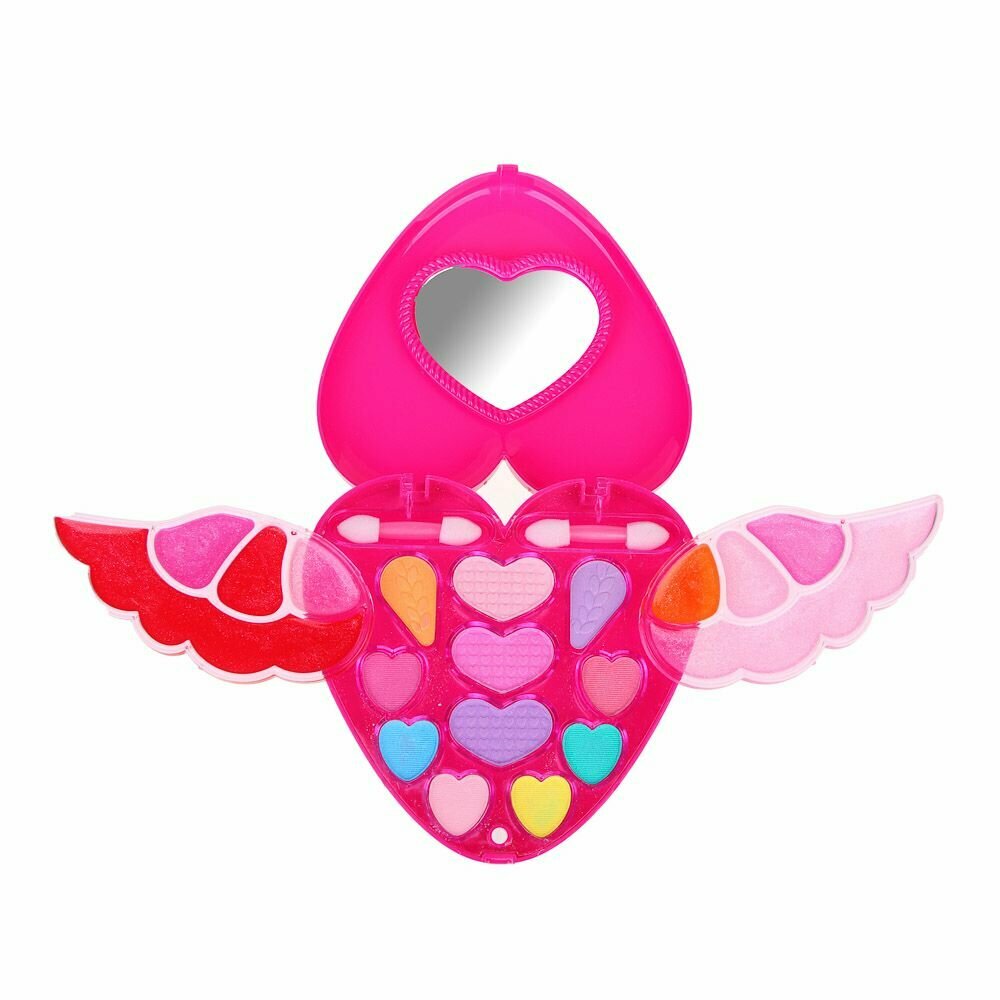 Тени д. век с блёстками, палетка с форм. Сердечки,6 цветов: фуксия, фиолет, золот, бирюз, голуб. (Т18932)