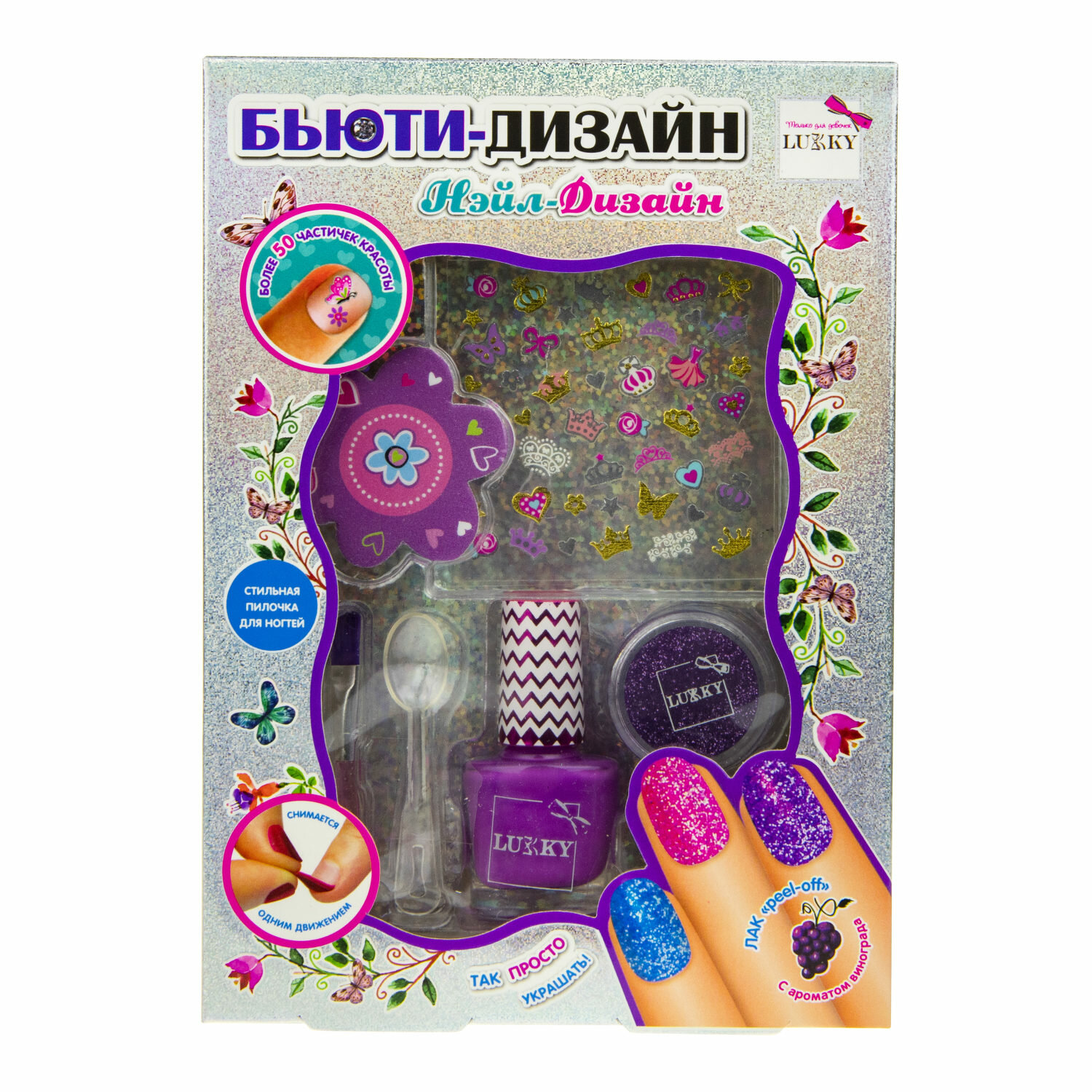 Набор для маникюра Lukky Бьюти-Дизайн "Нэйл-Дизайн" лак 006 Темно-Малиновый, аромат винограда информация: