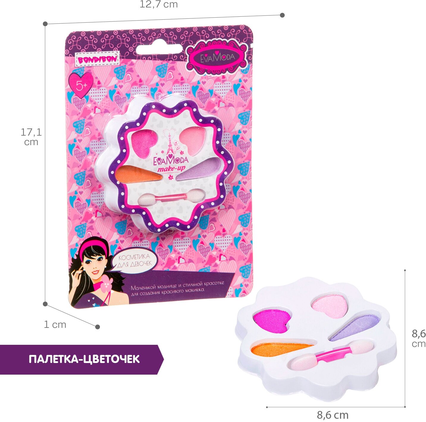 Набор детской декорат. косметики Bondibon Eva Moda, CRD 12,6х17,2 см, цветок с тенями для век (4 отт информация:
