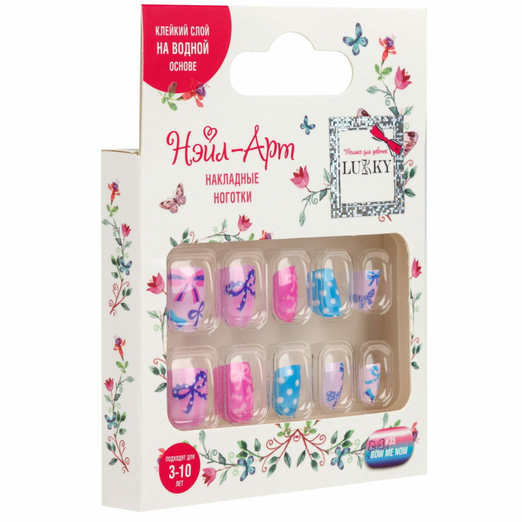 Накладные ногти на клеевой основе Lukky Нэйл-Арт наб. №35 Bow Me Now, набор 10 шт, 3-10 лет информация: