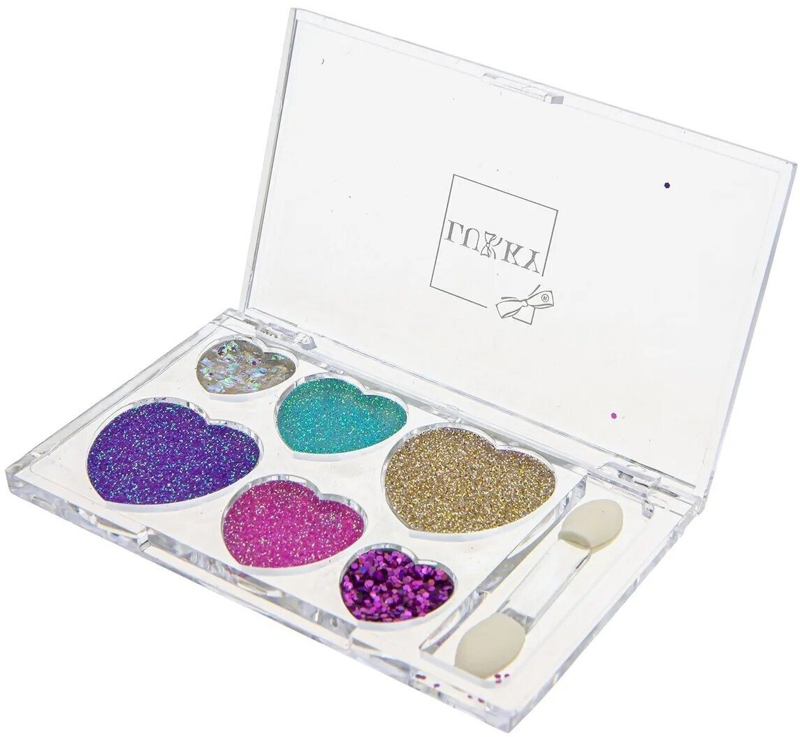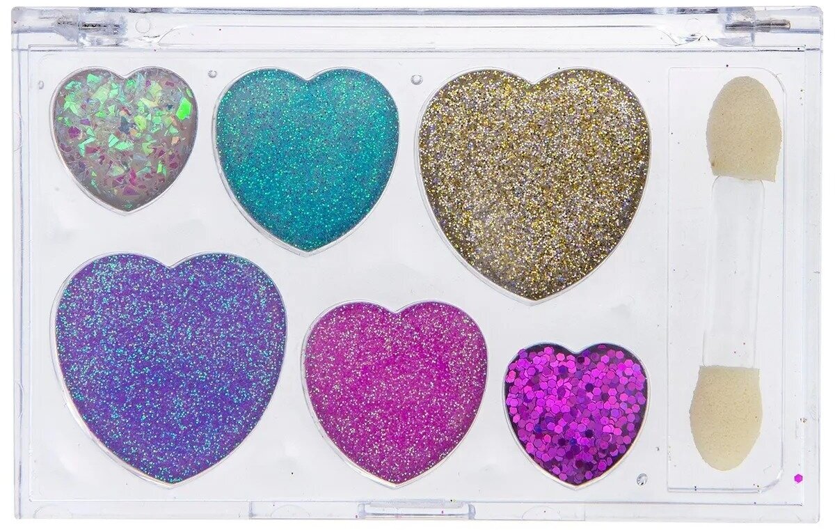 Тени д. век с блёстками, палетка с форм. Сердечки,6 цветов: фуксия, фиолет, золот, бирюз, голуб. (Т18932) информация: