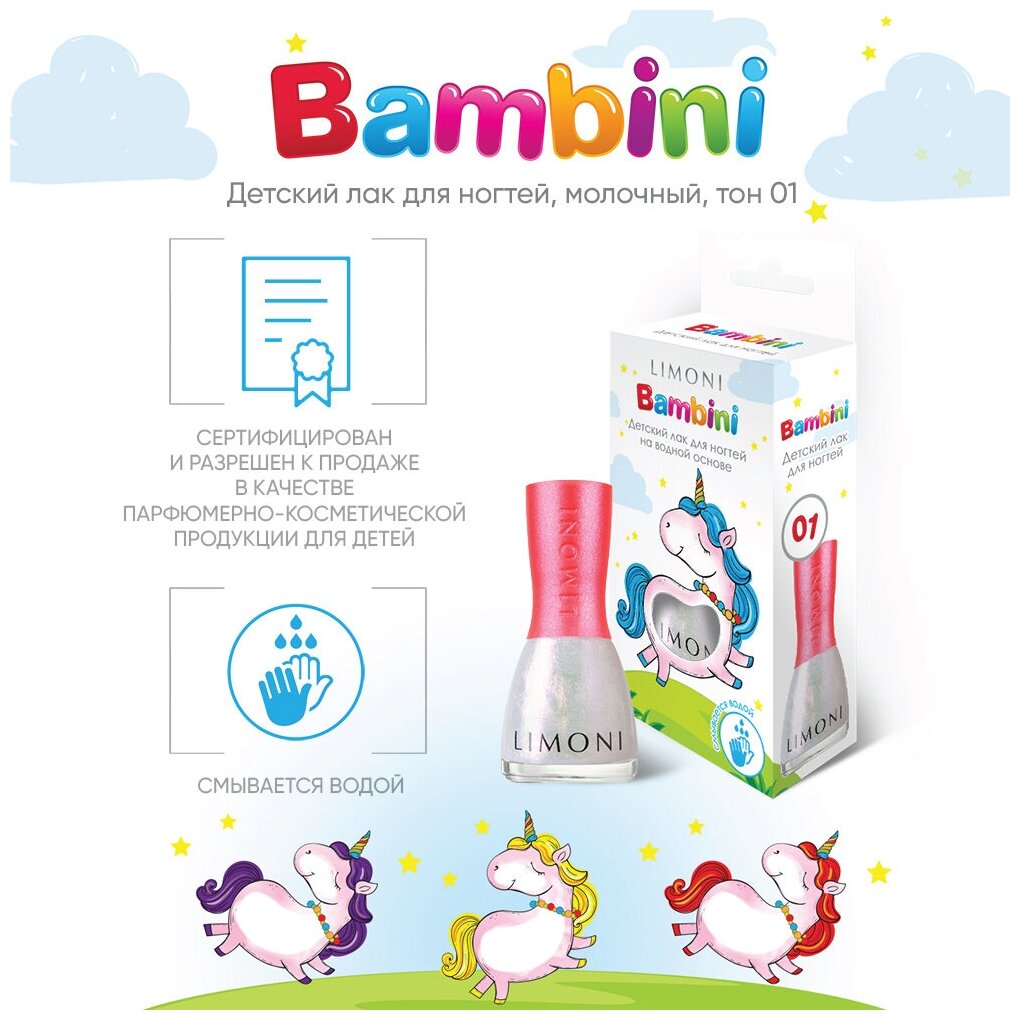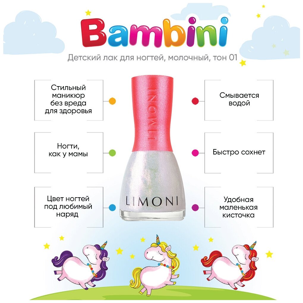 10 цен на Лак для ногтей детский на водной основе Bambini LIMONI / Тон 01