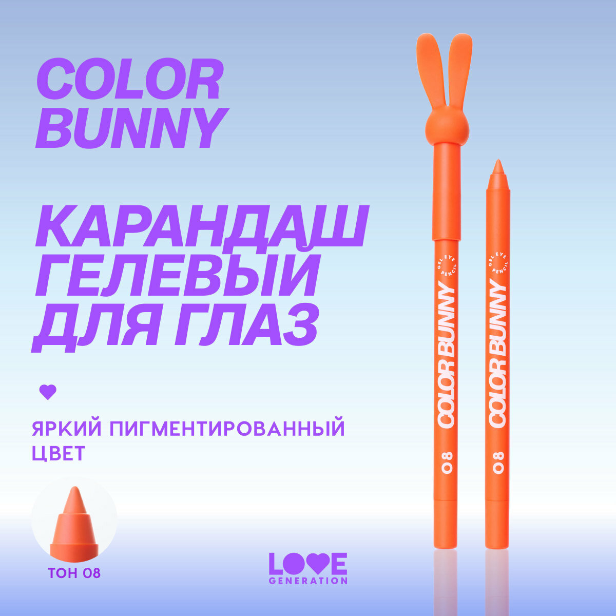 Карандаш гелевый для глаз Love Generation Color Bunny, тон 08 оранжевый, 1,3 г информация:
