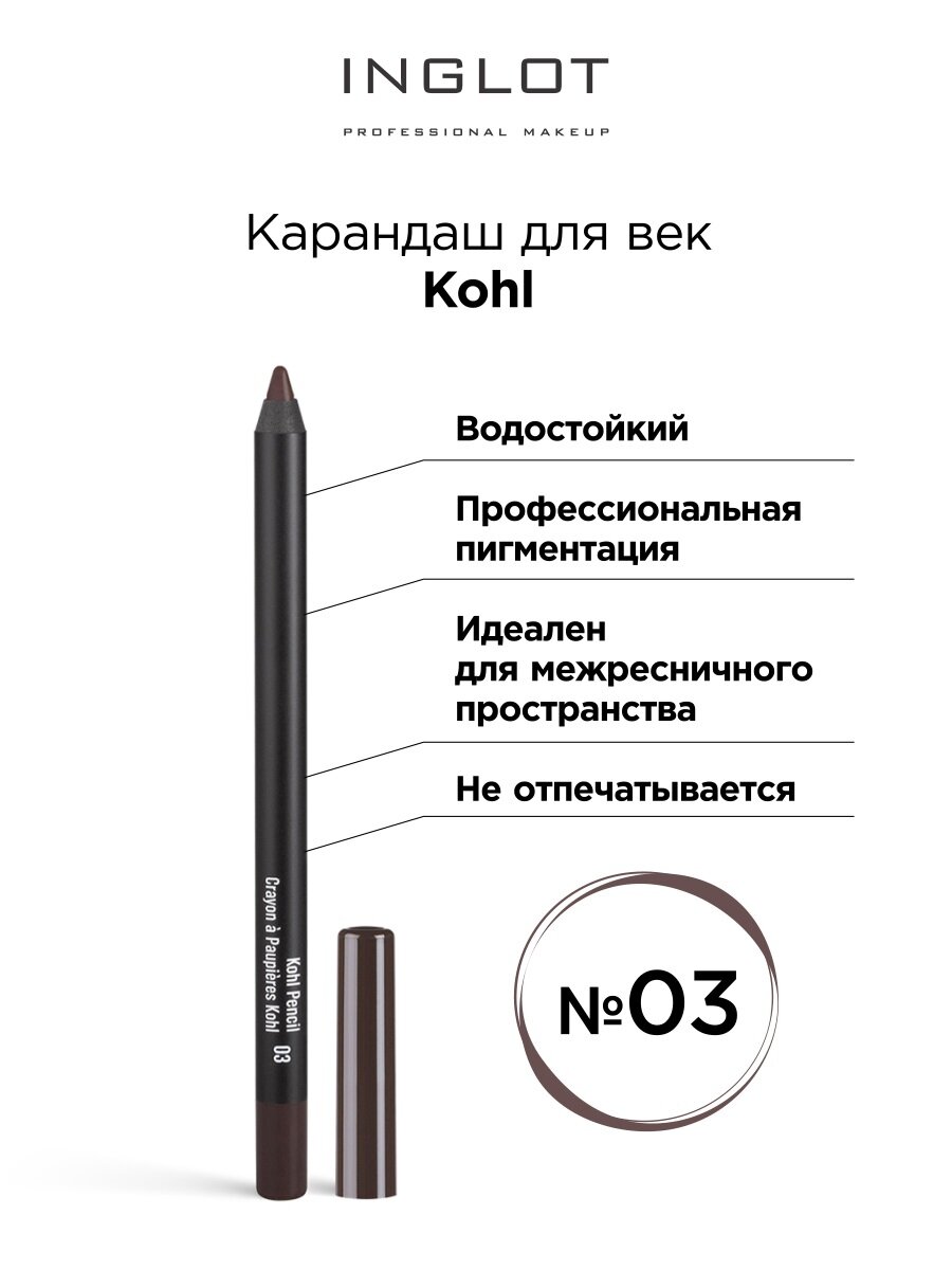 10 цен на Карандаш для глаз INGLOT оттенок 03 Kohl, кайал для глаз, водостойкий