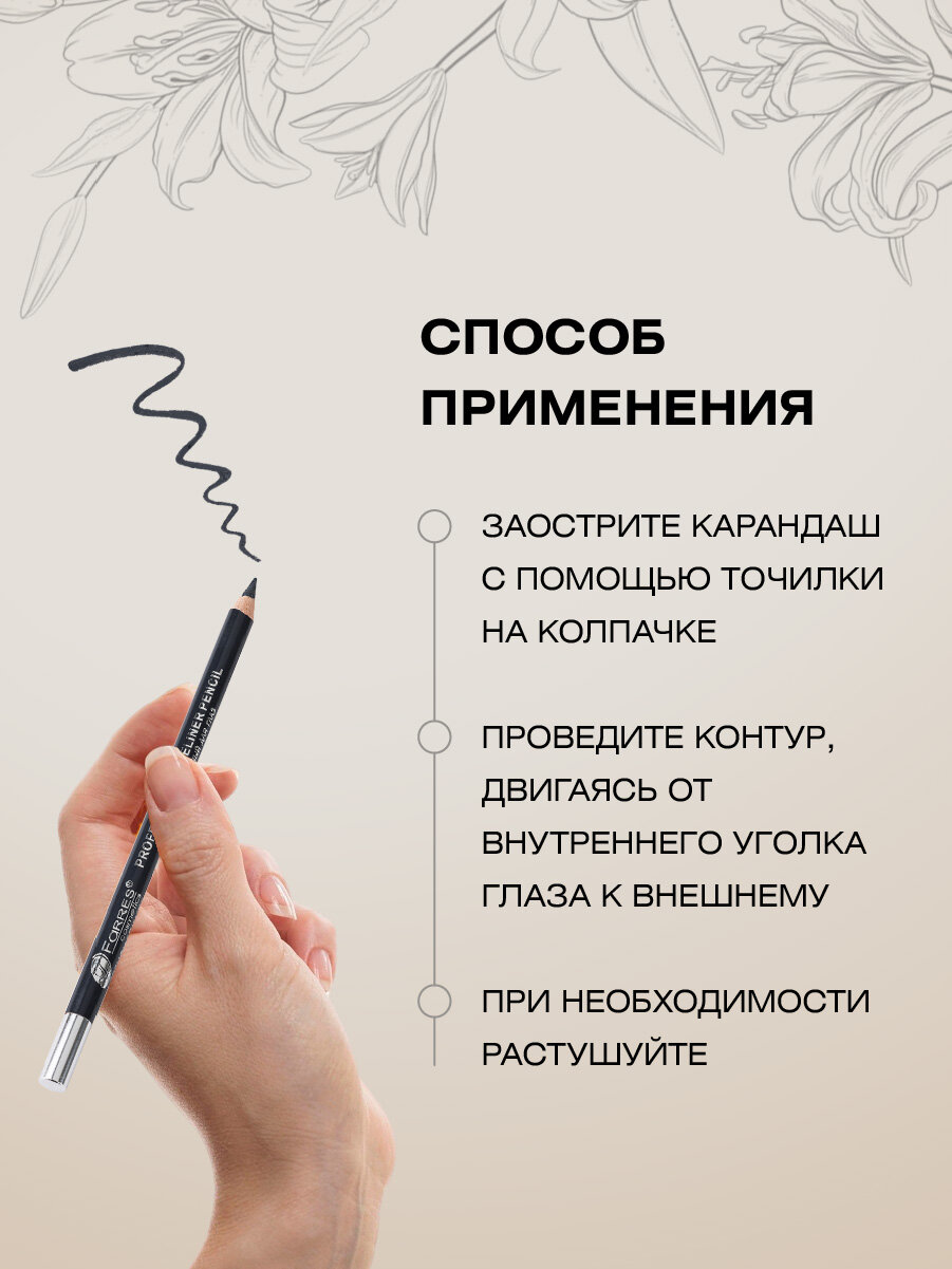 10 цен на Карандаш для глаз серый контурный Farres с точилкой, тон 051 grey