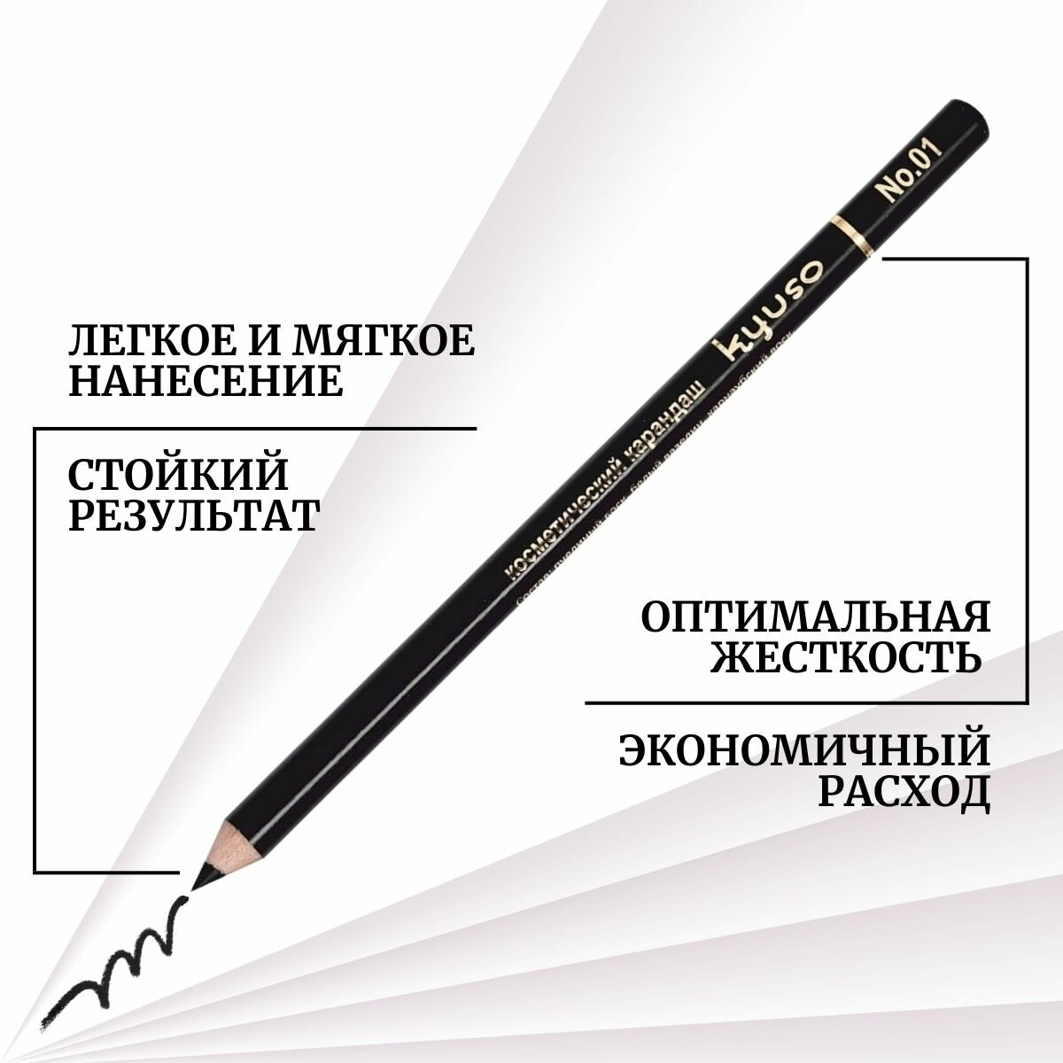 Карандаш для глаз KYUSO, черный, с точилкой, структура мягкая информация: