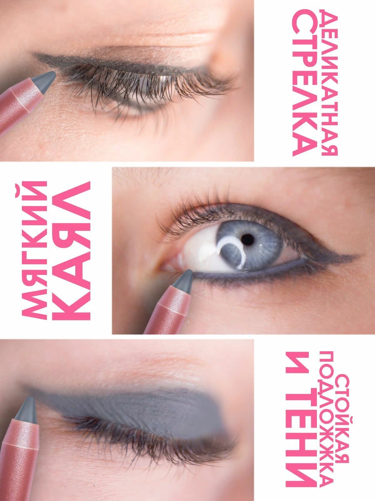 Отзывы на Подводка-тени-каял, 3в1, 24 часа, MAKE U MAKE, шиншилла + точилка